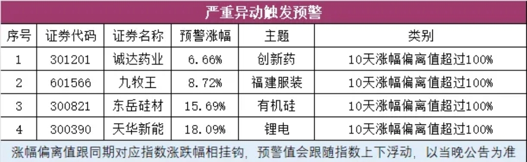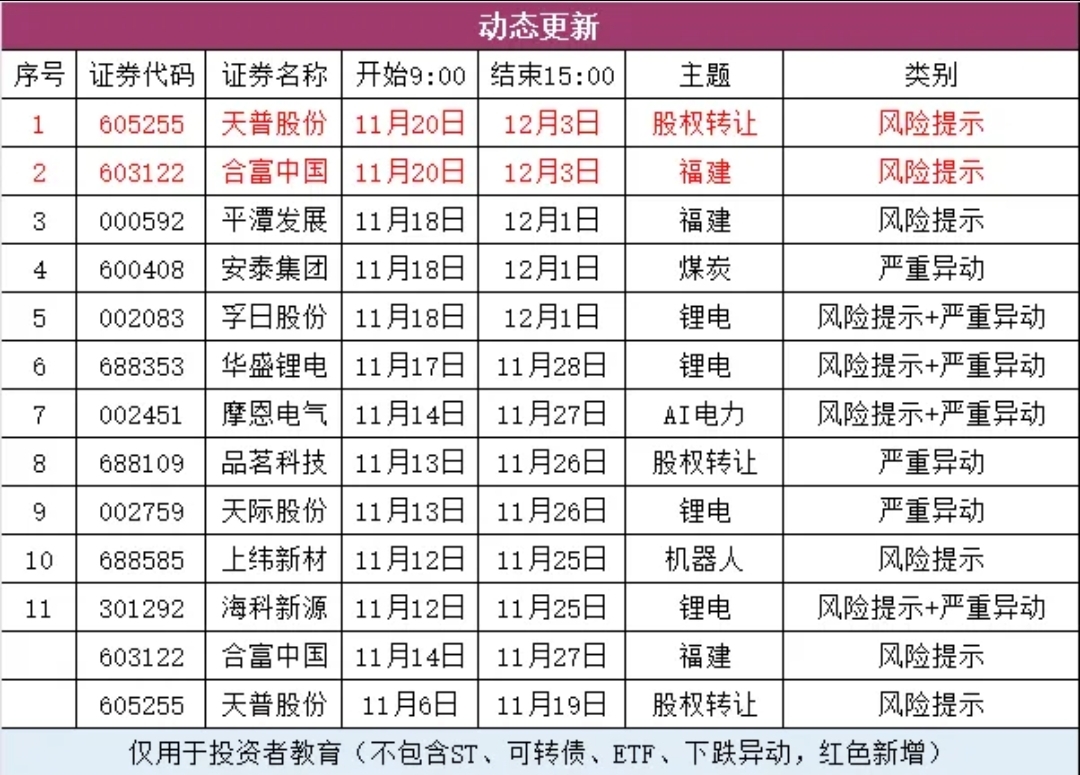 四、异动公告