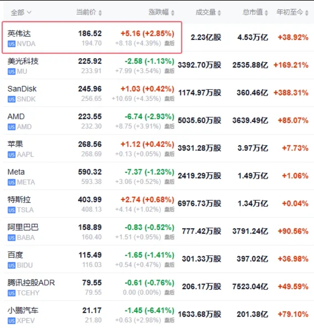 二、热门美股和中概股