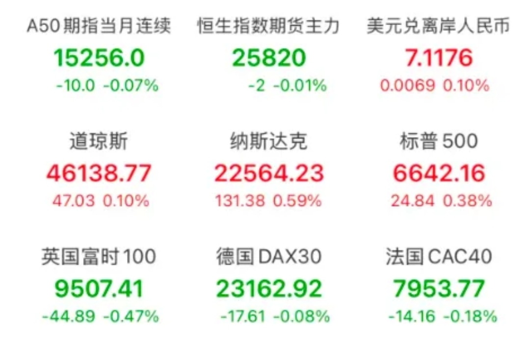 美股三大指数集体收涨,大型科技股涨跌互现,谷歌、英伟达、甲骨文、英特尔涨超2%。