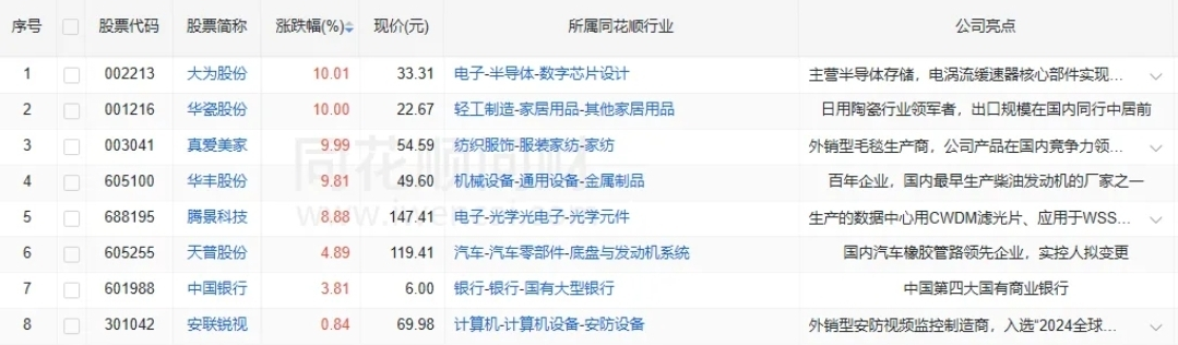 收盘价创新高8家(找对标,看行业趋势)