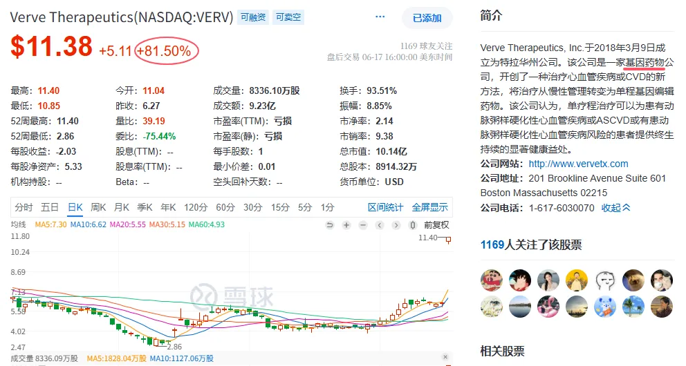 三、礼来13亿美元收购基因编辑公司 Verve Therapeutics大涨81.5%