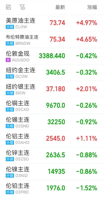 1、国际原油期货结算价大幅收涨超4%。WTI 7月原油期货收涨3.07美元,涨幅4.28%,报74.84美元/桶。布伦特8月原油期货收涨3.22美元,涨幅4.4%,报76.45美元/桶。