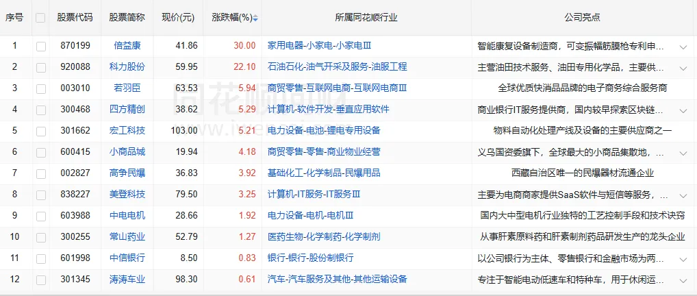 1板:创新医疗、爱朋医疗、南京熊猫、麒盛科技、倍益康、荣泰健康
