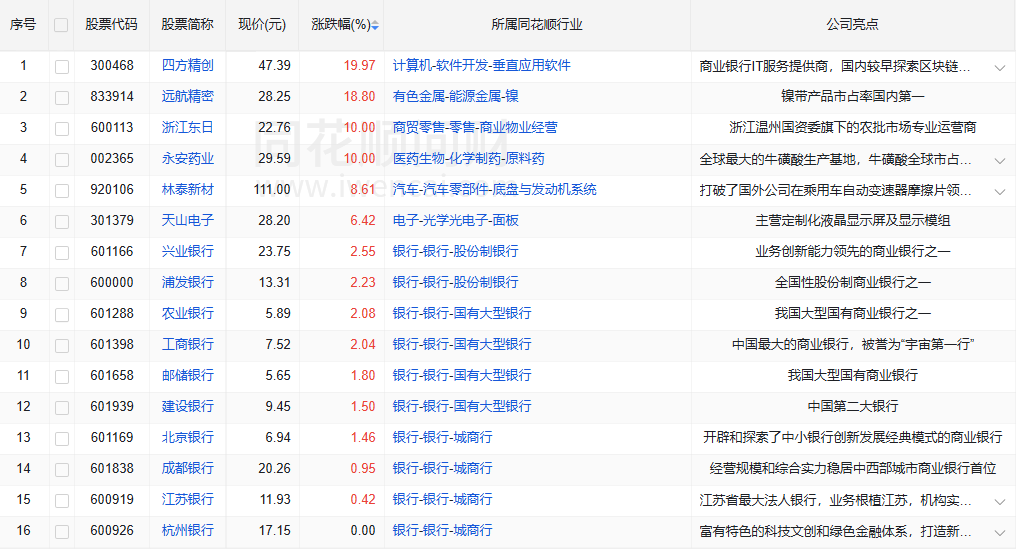 银行(10):兴业银行、浦发银行、农业银行、工商银行、邮储银行、建设银行、北京银行、成都银行、江苏银行、杭州银行
