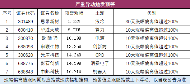 3连板:申联生物、新天药业、川润股份、诺德股份、科森科技、汉钟精机、华宏科技、同洲电子、中恒电气