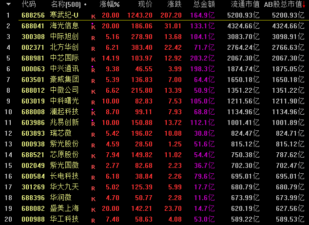 1板:科德教育、佳都科技、东方明珠、合 力 泰、宏和科技、云天励飞、川润股份、方正科技、航锦科技、品高股份、远程股份、高新发展、中科曙光、好 上 好、安孚科技、中材科技、华东重机、群兴玩具、鼎泰高科、禾盛新材、旭光电子、广安爱众、伟隆股份、奥海科技、盛美上海、东材科技、海光信息、昆仑万维、和 而 泰、兆易创新、艾 布 鲁、寒 武 纪、成都华微、浙大网新