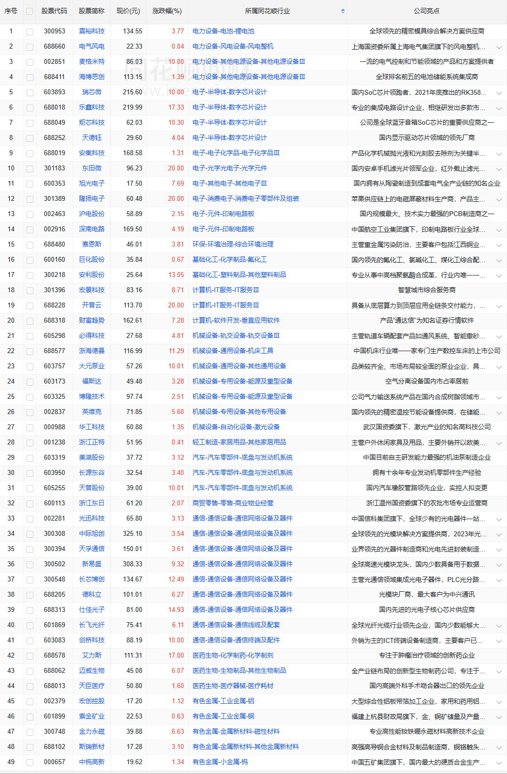 收盘价创新高49家(找对标,看行业趋势)