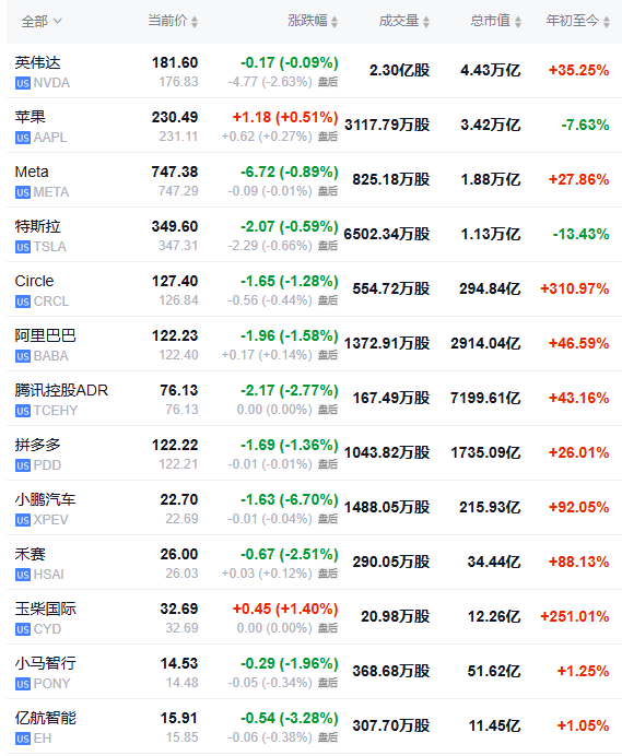 二、热门美股和中概股