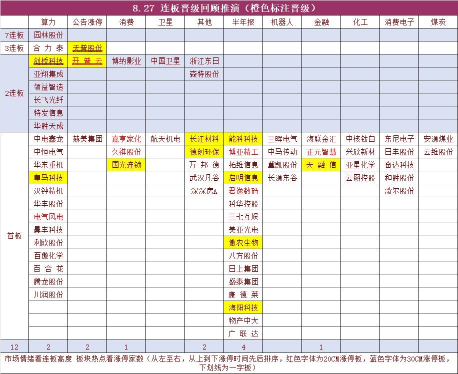 二、连板晋级回顾推演(橙色代表晋级)