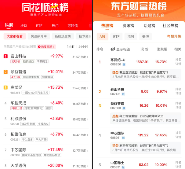 东方财富热榜:寒武纪、岩山科技、领益智造、中芯国际、中国稀土