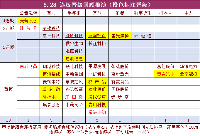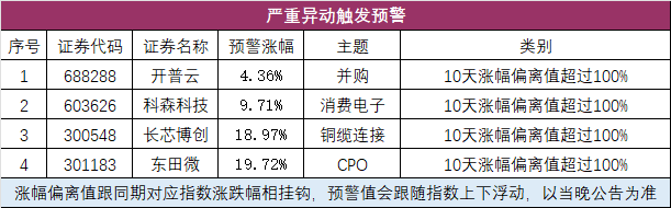1板:长飞光纤、华升股份、张江高科、江南新材、红 宝 丽、特发信息、沃格光电、国际复材、凯美特气、东山精密、万通发展、斯达半导、英 维 克、天孚通信、崇达技术、金安国纪、飞乐音响、鼎通科技、深南电路、宏和科技、奕东电子、洪田股份、通合科技、大港股份、领益智造、东材科技