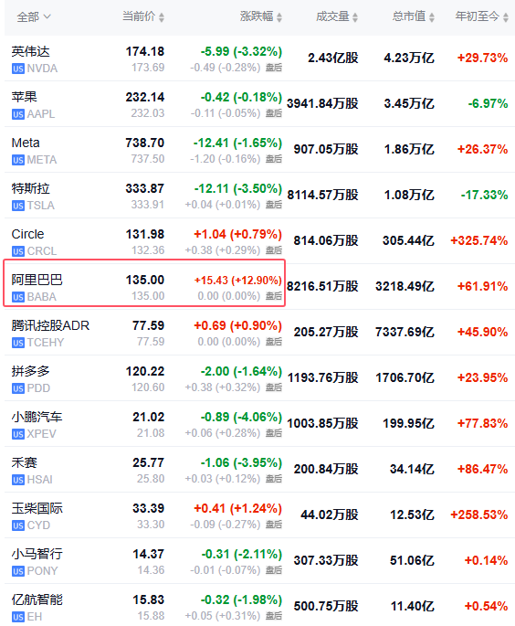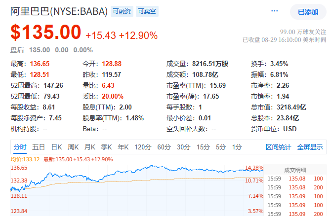 二、阿里巴巴Capex超预期 股价上涨12.9%