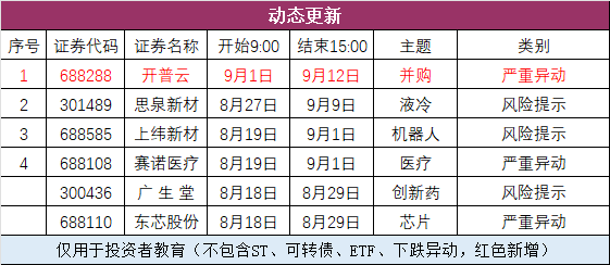 四、异动公告