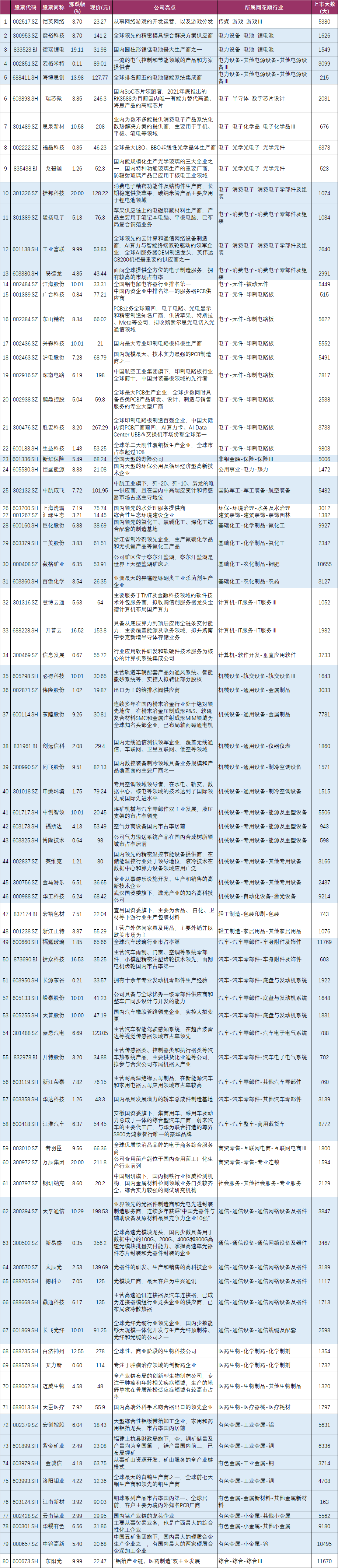收盘价创新高80家(找对标,看行业趋势)