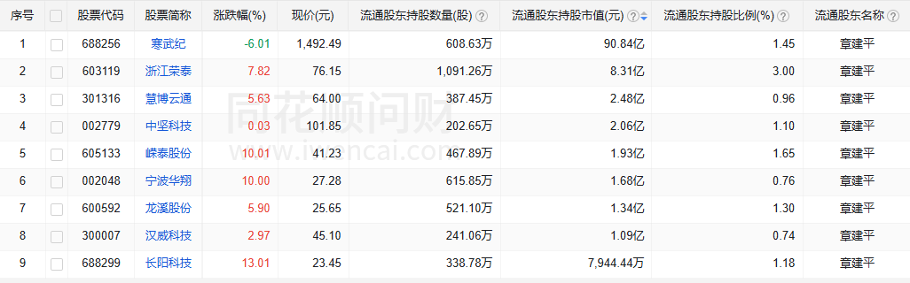 六、章建平半年报持股
