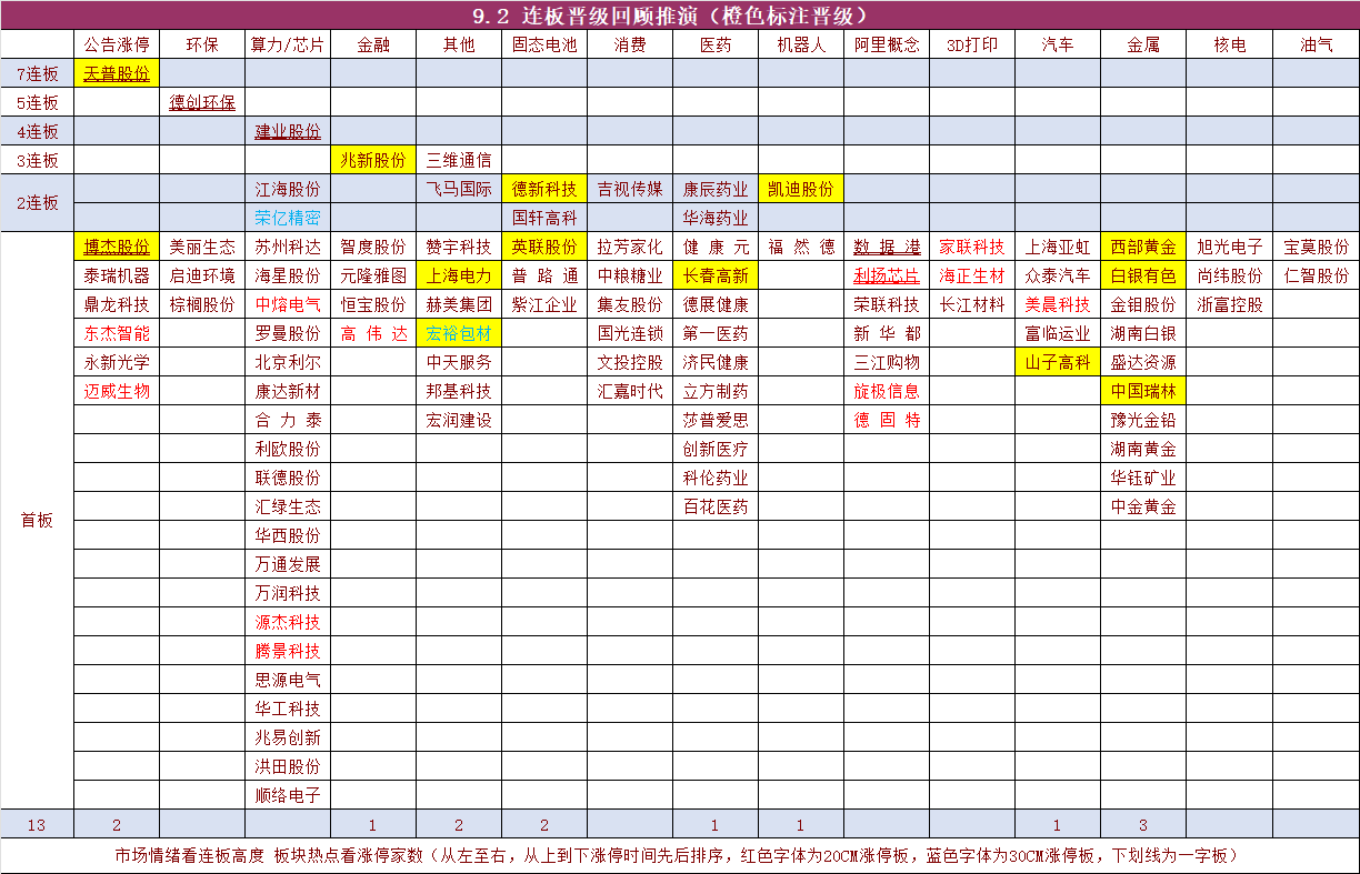 二、连板晋级回顾推演(橙色代表晋级)