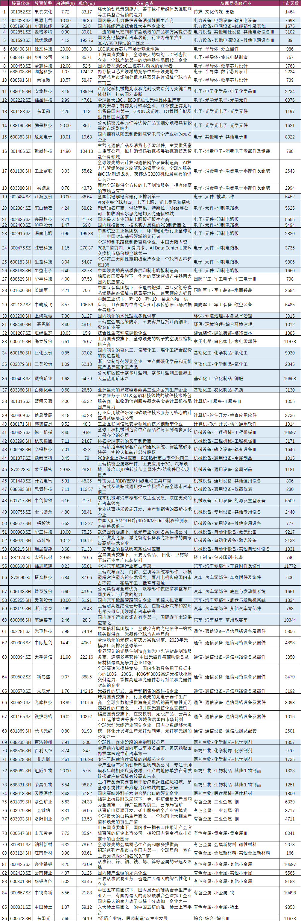 收盘价创新高86家(找对标,看行业趋势)