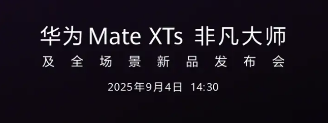 华为新款Mate XTs非凡大师发布会将于9月4日下午举行,也有博主爆料华为或首发eSIM 手机。