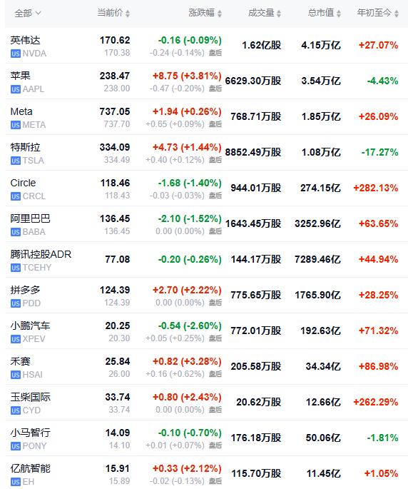 热门中概股收盘涨跌互现,纳斯达克中国金龙指数收跌0.19%。