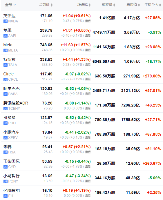 热门中概股多数下跌,纳斯达克中国金龙指数收跌1.11%。