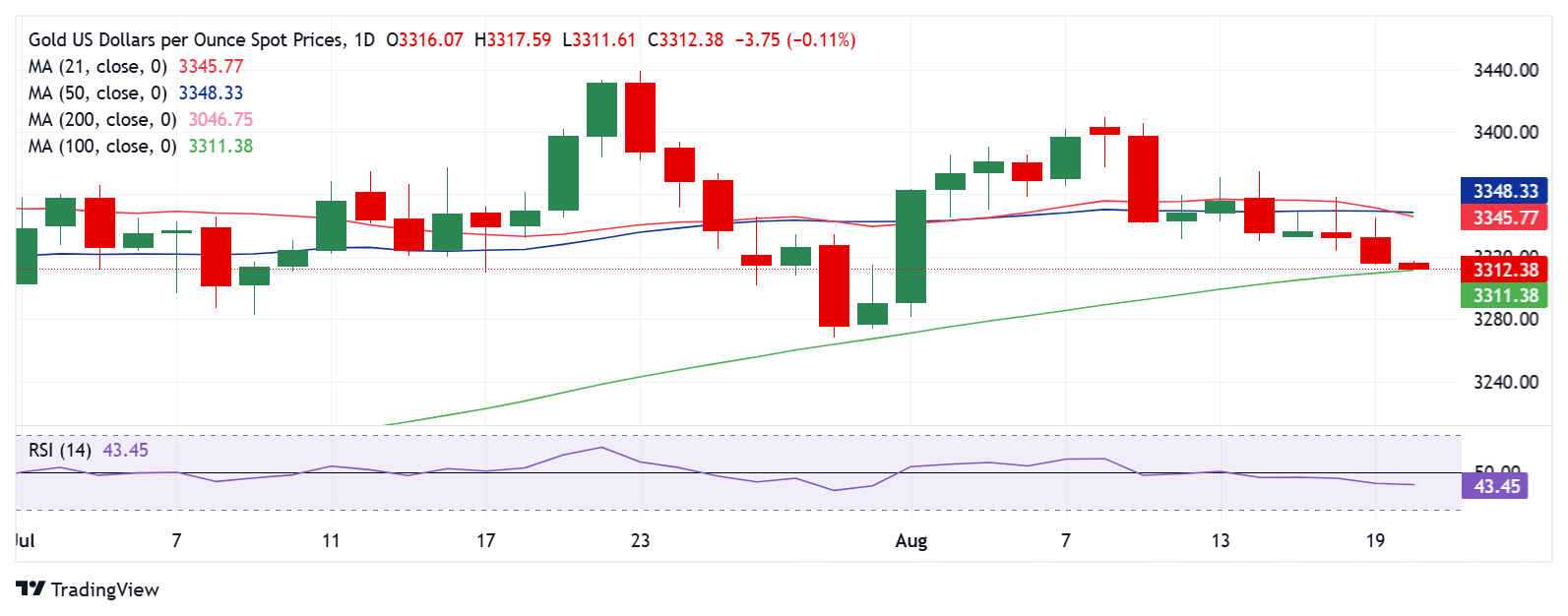 截至发稿,现货黄金上涨0.2%,至3,321美元,此前触及8月1日以来最低点3311.40美元。