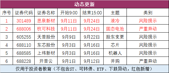 四、异动公告