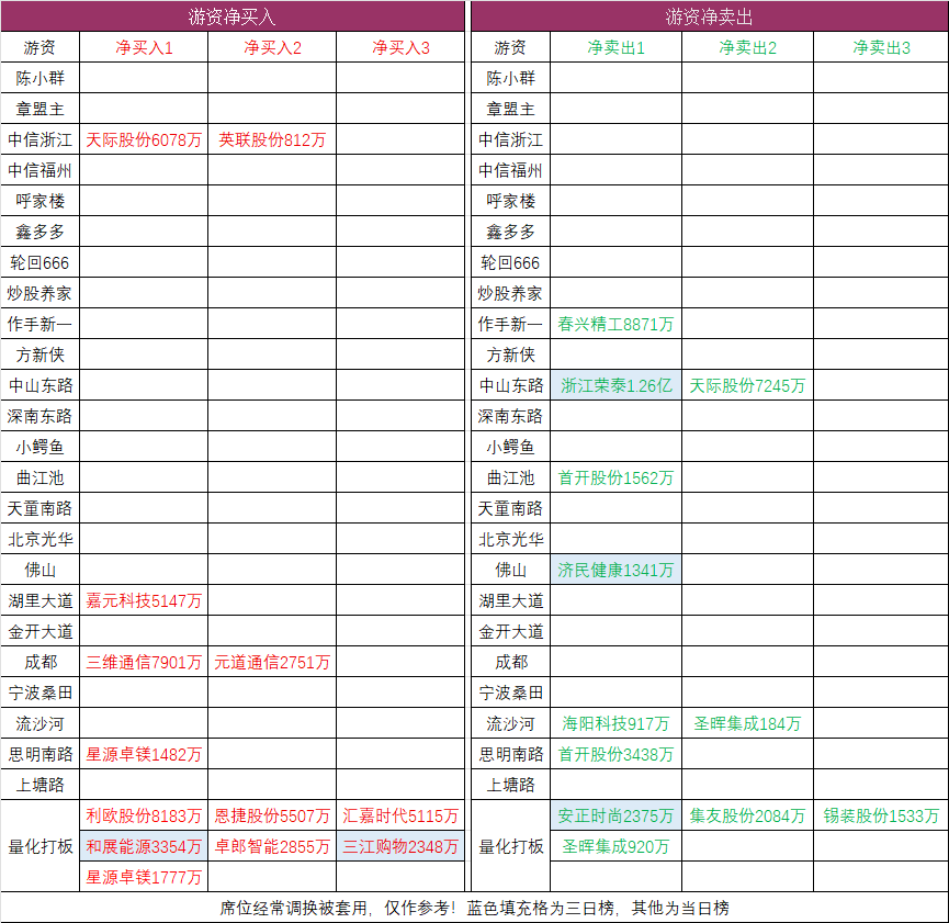 No.5 机构席位和游资动向