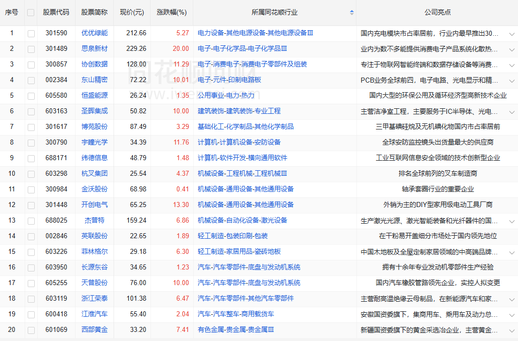 收盘价创新高20家(找对标,看行业趋势)