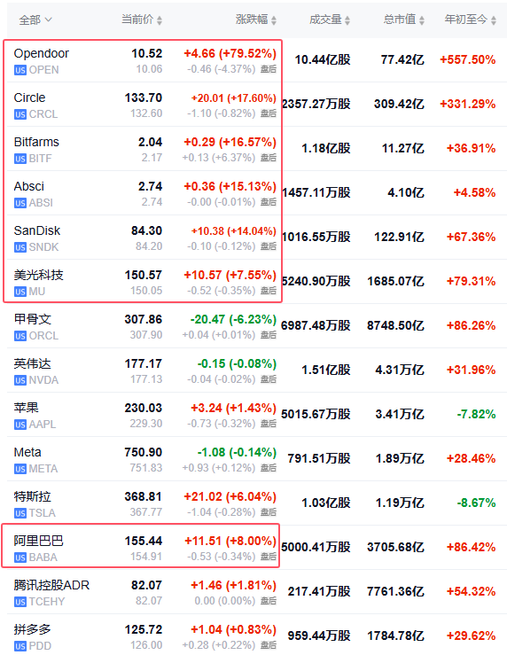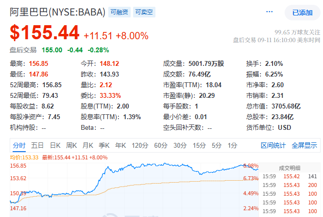 五、阿里巴巴股价涨超8%