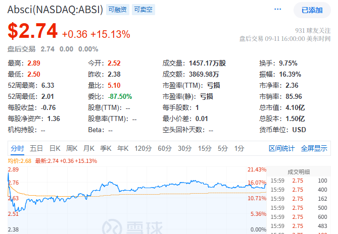 六、AI药物开发商Absci与甲骨文和AMD达成合作 股价涨超15%