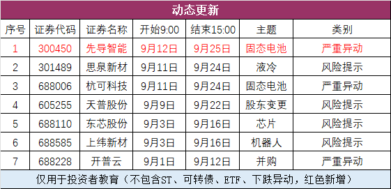 四、异动公告