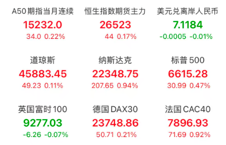 美股三大指数集体收涨,标普500指数、纳指创收盘新高。大型科技股普涨,谷歌涨超4%。