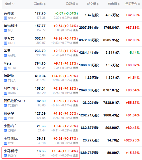 热门中概股多数上涨,纳斯达克中国金龙指数收涨0.87%。