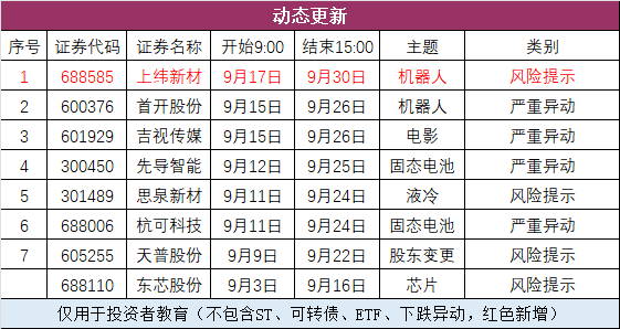 四、异动公告