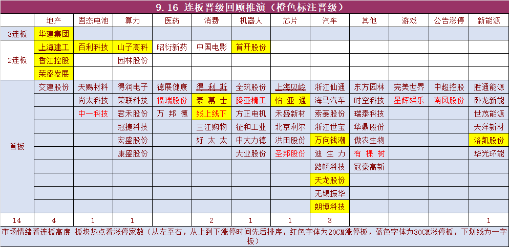 二、连板晋级回顾推演(橙色代表晋级)