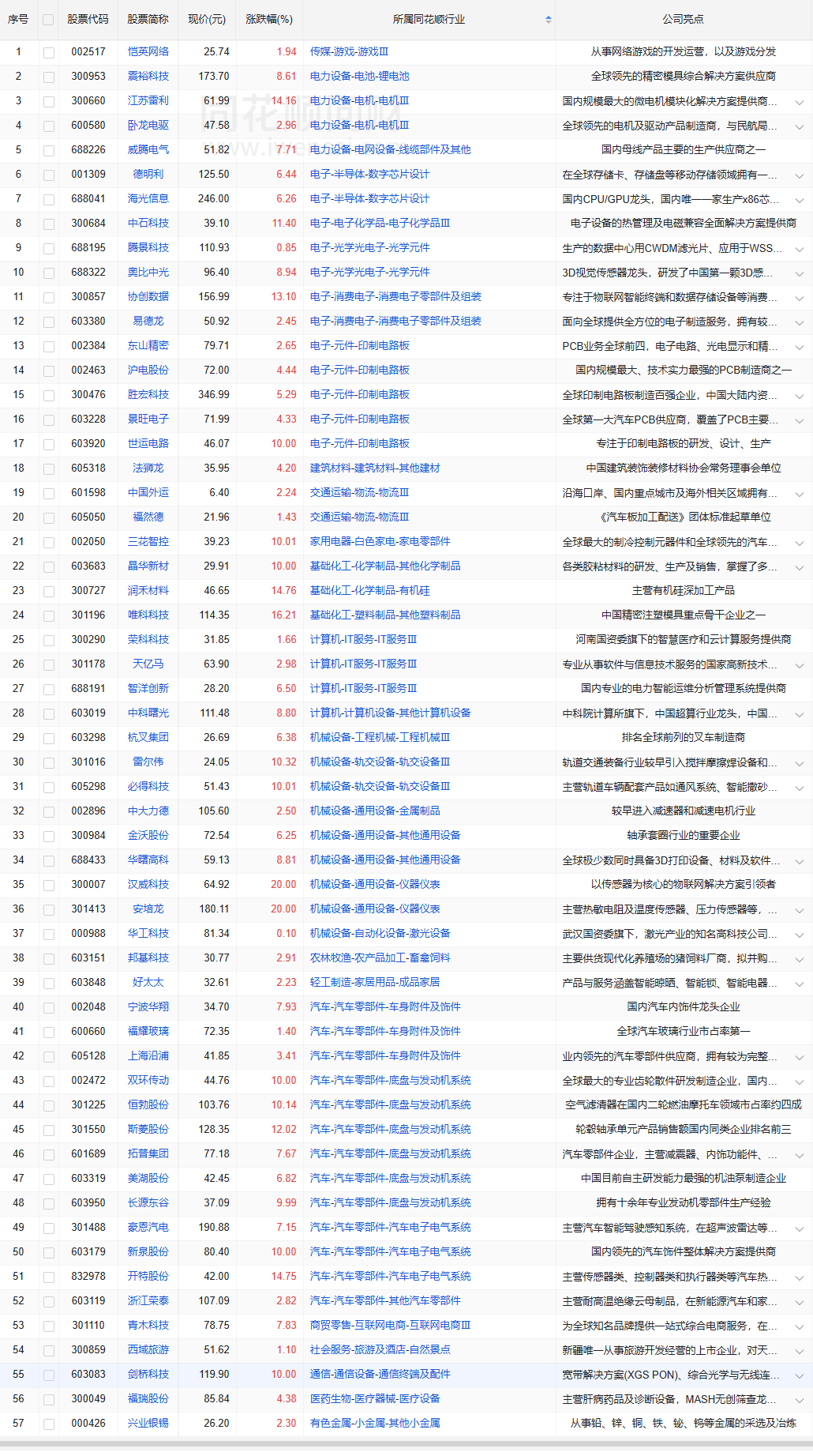 收盘价创新高57家(找对标,看行业趋势)