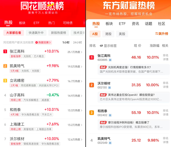 同花顺热榜:张江高科、凯美特气、立讯精密、山子高科、和而泰
