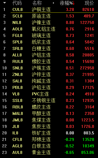 上期所沪铜主力合约涨超3.28%,报82610元/吨。