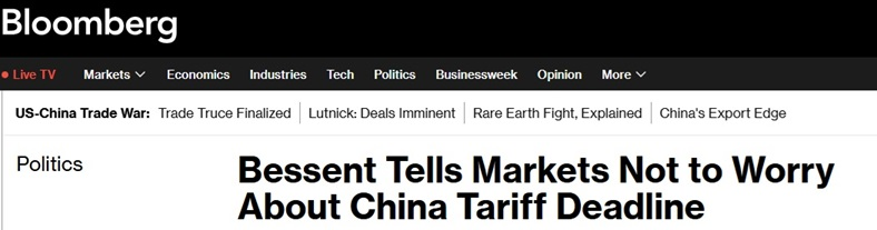 贝森特当地时间周二接受彭博电视台采访时说:“我告诉投资者,不必担心8月12日这个日期。”